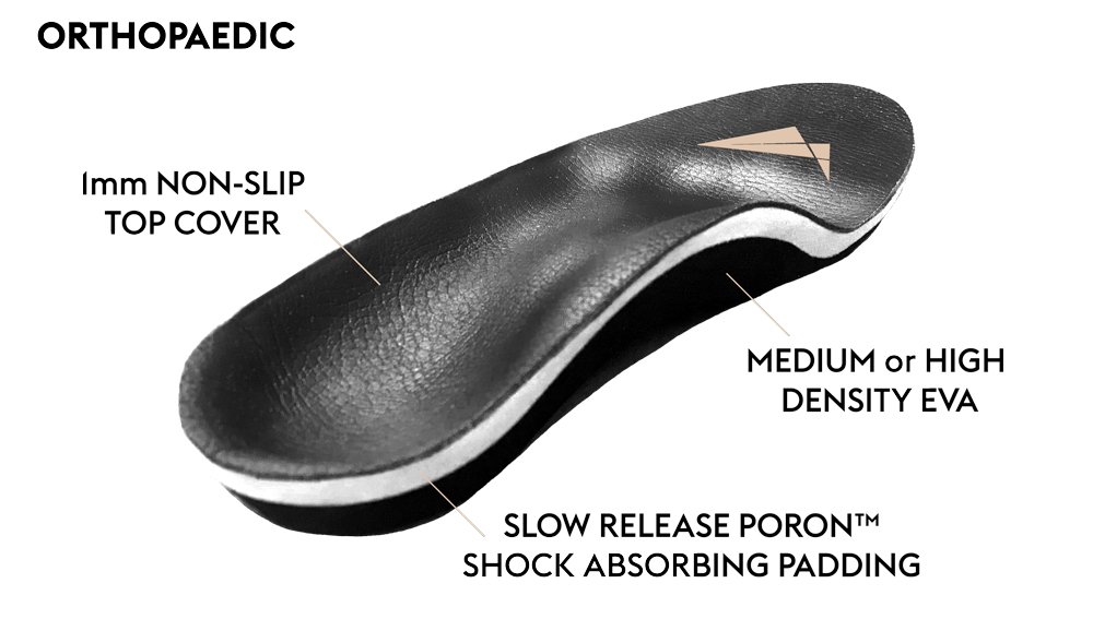 Regardless of the shape of the foot, the orthotics are designed to contact the whole foot thereby distributing the weight evenly across the entire foot to relieve pressure points and allow the rider to have an even and comfortable ride.